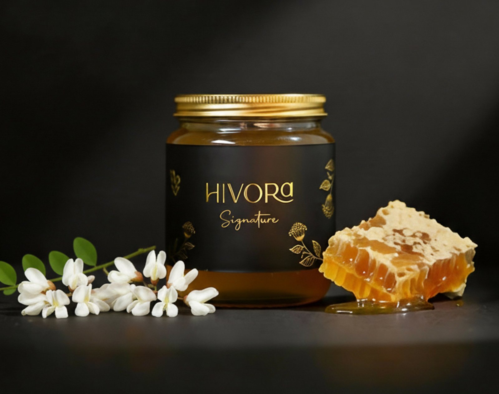 Handled with patience and bottled with care, Hivora Signature Honey reflects the quiet beauty of untouched landscapes and the philosophy of restraint that defines our brand. It is a honey created not for volume, but for those who appreciate authenticity, simplicity, and lasting quality.